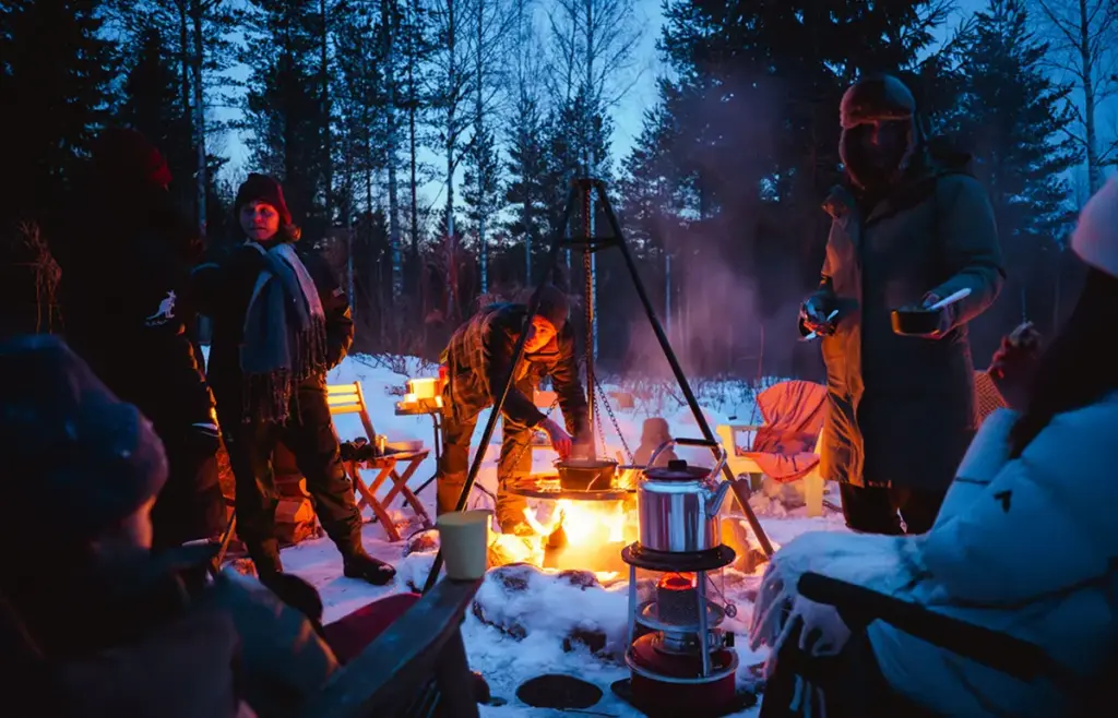 Voor de echte outdoor experience: slapen in sfeervolle tenten met kachel, kampvuurmomenten, koken op open vuur en wakker worden tussen de bomen. Eenvoudig, comfortabel en heel verbindend.