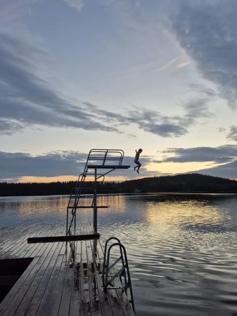 Geen strak schema, geen vaste uren. We leven hier met de seizoenen en met wat de dag brengt. Soms werken we lekker door, soms is het tijd voor een fika, een mooie hike met onze gasten of je neemt een duik in meer. Als je komt helpen, ben je onderdeel van ons dagelijks leven, met genoeg ruimte voor je eigen tijd.
