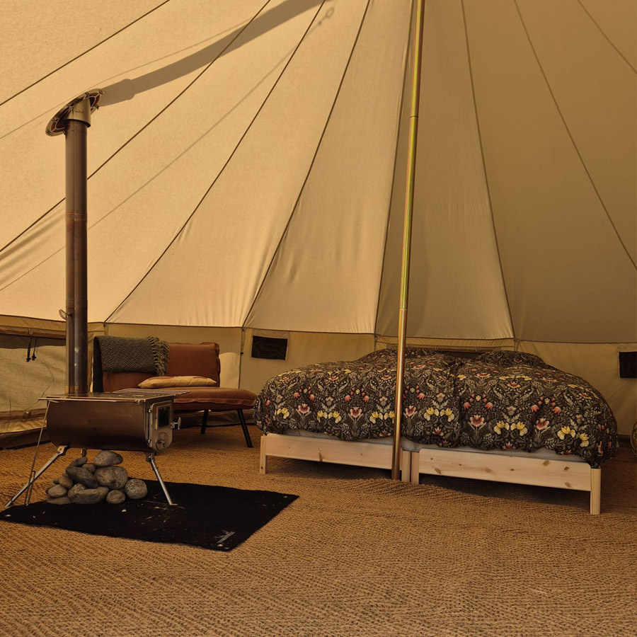 “Buiten slapen met comfort: welkom in onze bell tent.”
